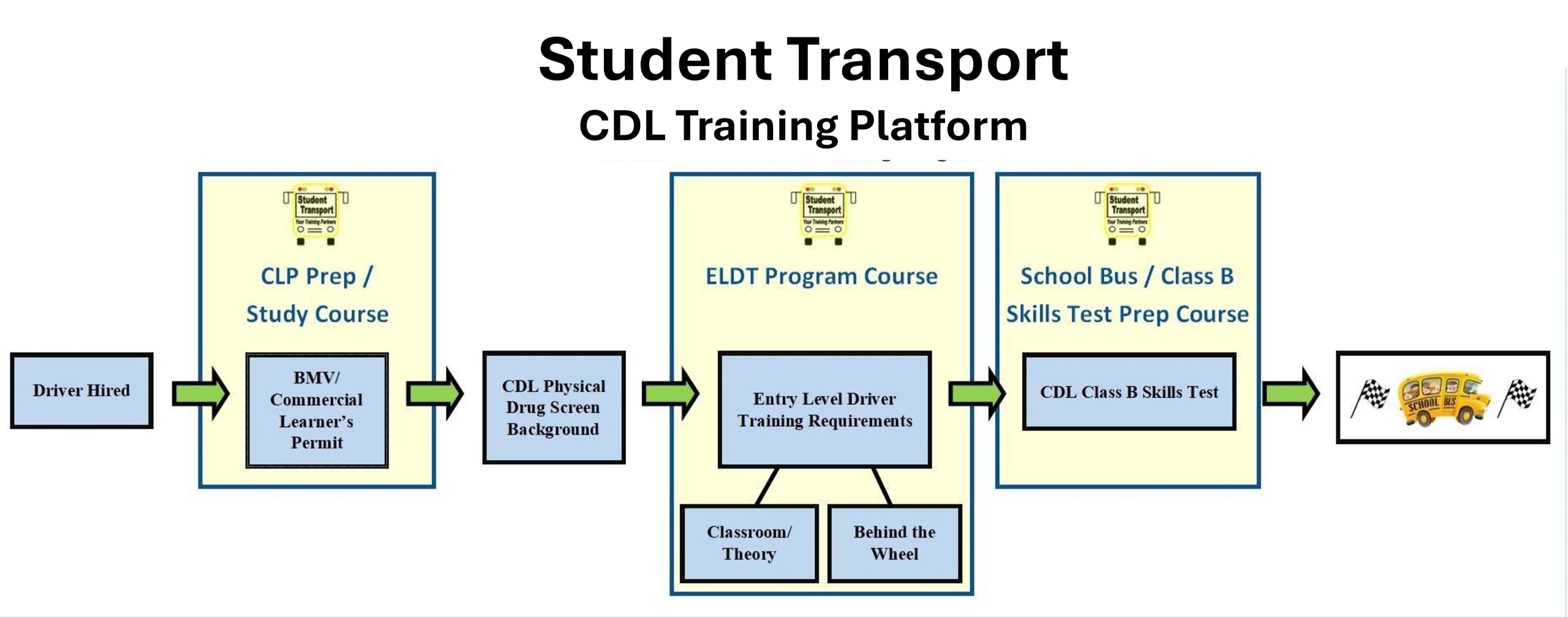 Student Transport transforms CDL licensing and school bus driver training into an efficient, accessible, and digitally driven experience tailored for modern districts.